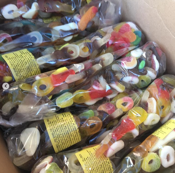 Lekkere, mooie en kleurrijke kant en klare snoepmix. Gevulde voorverpakte snoepzakjes 200gr (verhouding 20% zuur/gesuikerd - 80% gum/jelly). We zijn eerlijk en transparant deze snoepzakjes worden gevuld met snoep uit partijen, overstocks, einde reeks, tweedekeus, niet altijd de bekende snoepsoorten, ... . Indien we dit niet vertellen zou je het zelfs niet weten :-) Maar altijd lekker! Altijd leuk om te krijgen of te geven als traktatie of voor de doorverkoop voor verenigingen, sportclubs, benefiet, e.d. Geldinzamelen is gemakkelijk nu! Hoge winstmarge voor jouw club, school of vereniging! Kies uw aantallen in onderstaande veldje. Grotere aantallen nodig bel/sms/app dan even +32 499 677 046.